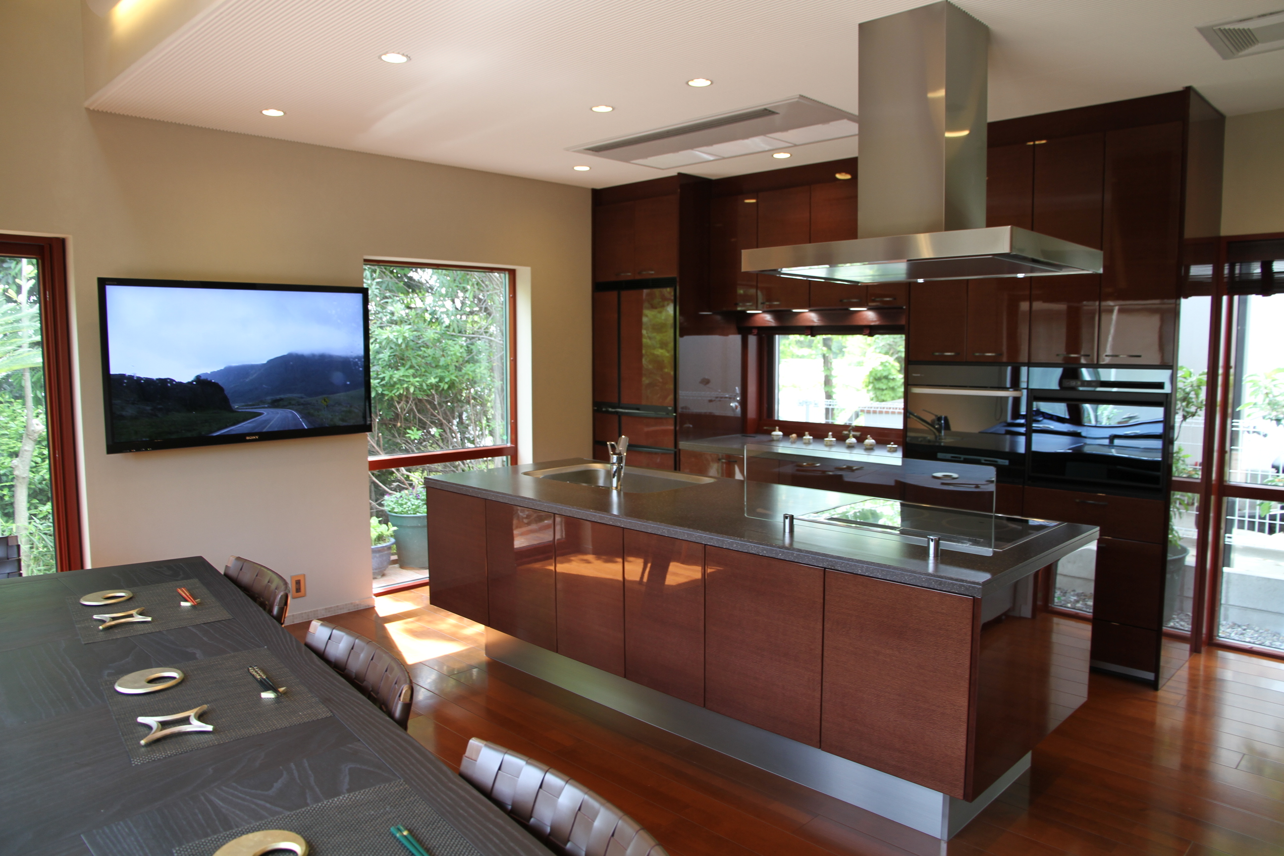 キッチンからもダイニングからもお庭を眺められる気持ちの良い空間です。