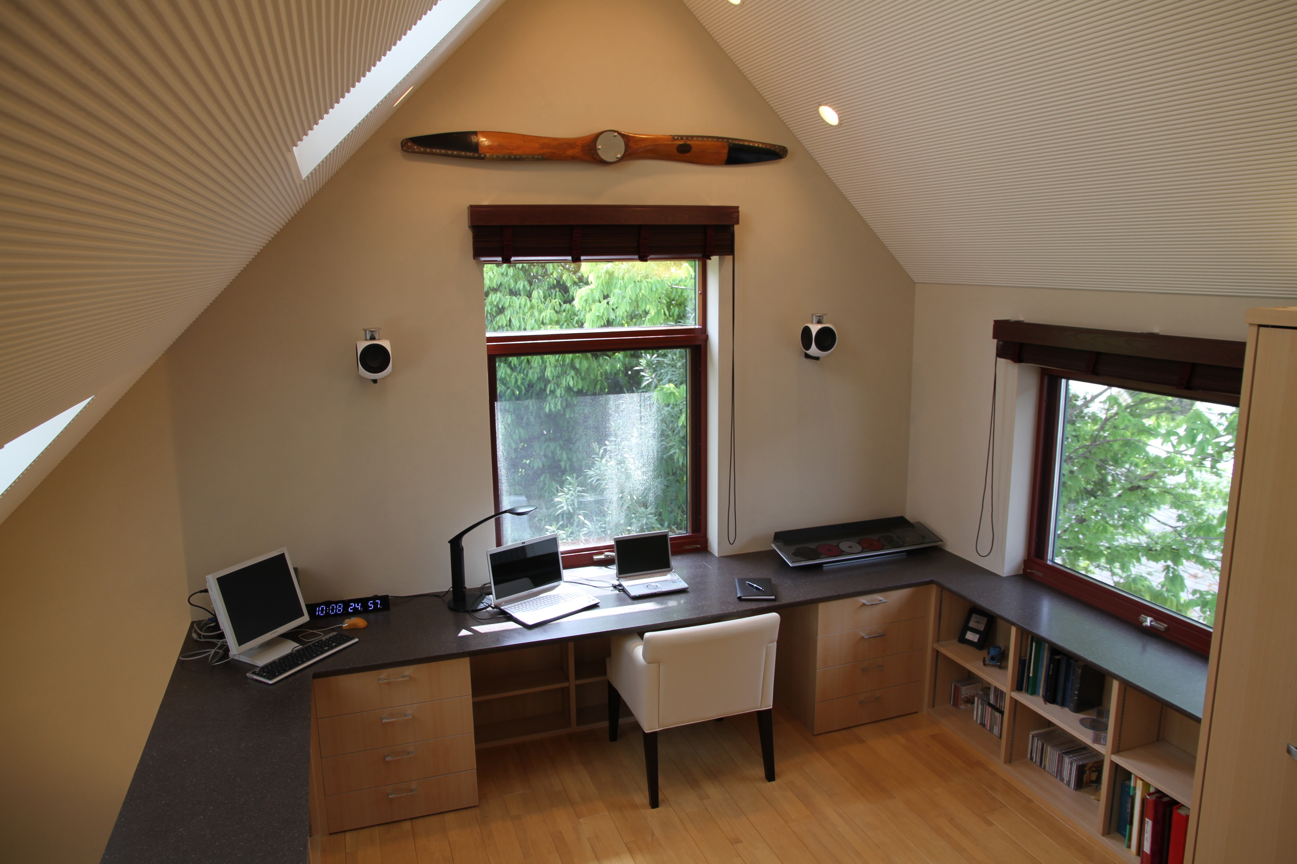仕事がはかどる、趣味の物に囲まれた書斎。